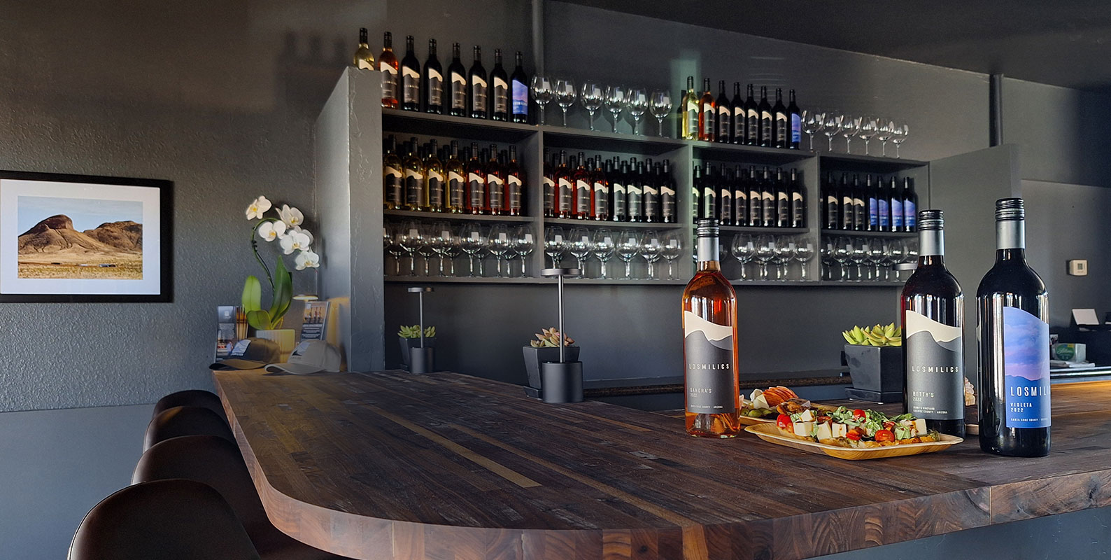 Our new tasting room in Scottsdale, AZ, is in the heart of Old Town. Enjoy flights, glasses, or bottles of Los Milics Vineyards wines, or pick up bottles to-go.